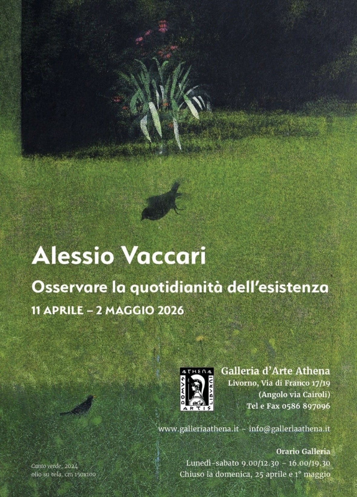 ‘Osservare la quotidianità dell’esistenza’ questo il titolo della prima mostra personale a Livorno di Alessio Vaccari. Sabato 11 aprile, alle ore 17.00 l’inaugurazione alla Galleria d'Arte Athena, in Via di Franco 17/19 . L’esposizione sarà visitabile fino al 2 maggio 2026.